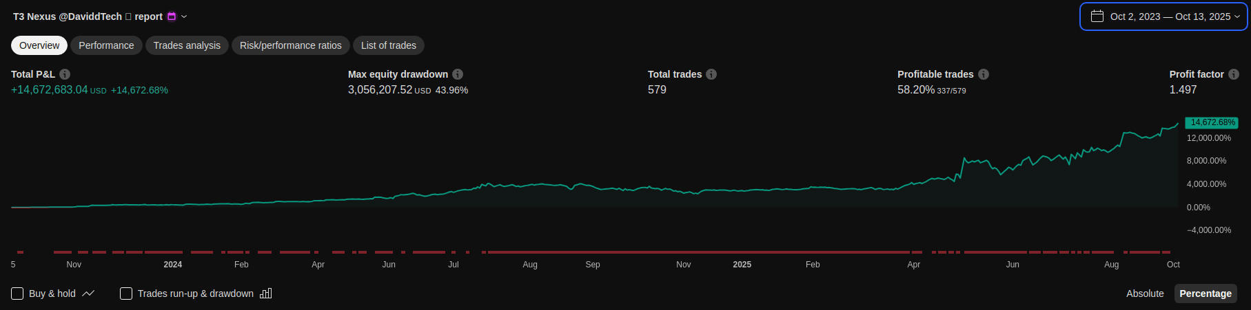 DaviddTech has completely transformed my approach to algorithmic trading. The depth of research, strategy optimization, and automation is next level. The Terminal is an absolute game-changer, and the live AI-powered trading streams are both educational and mind-blowing. If you're serious about algo trading, this is where you need to be!