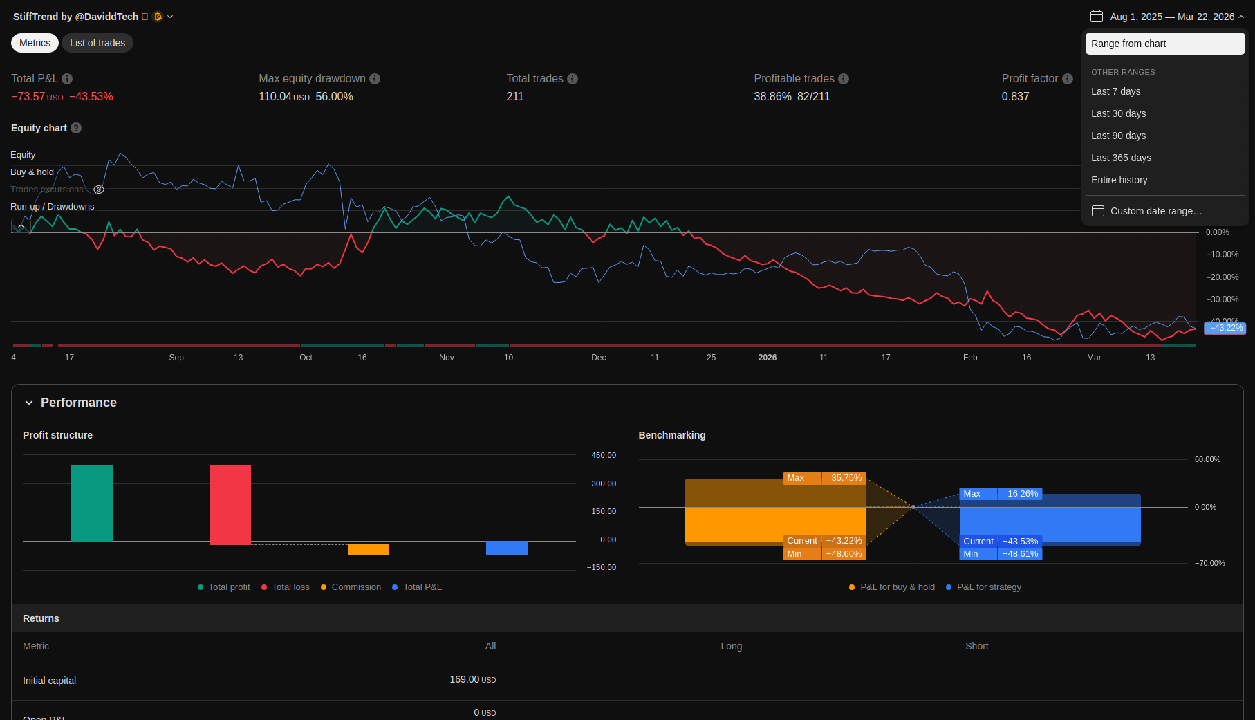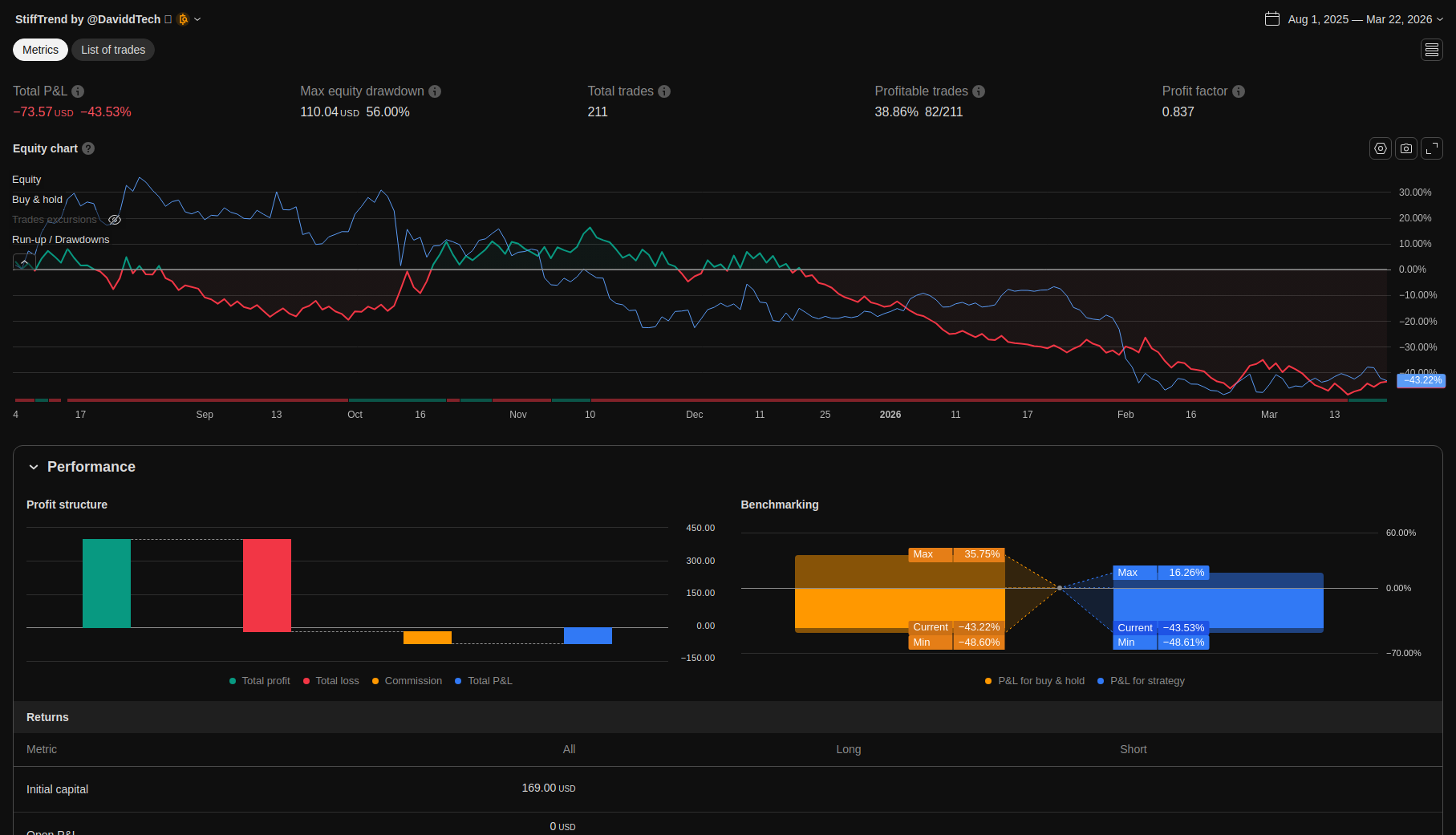 | Total Closed Trades | 211.0 | 131.0 | 80.0 | |||