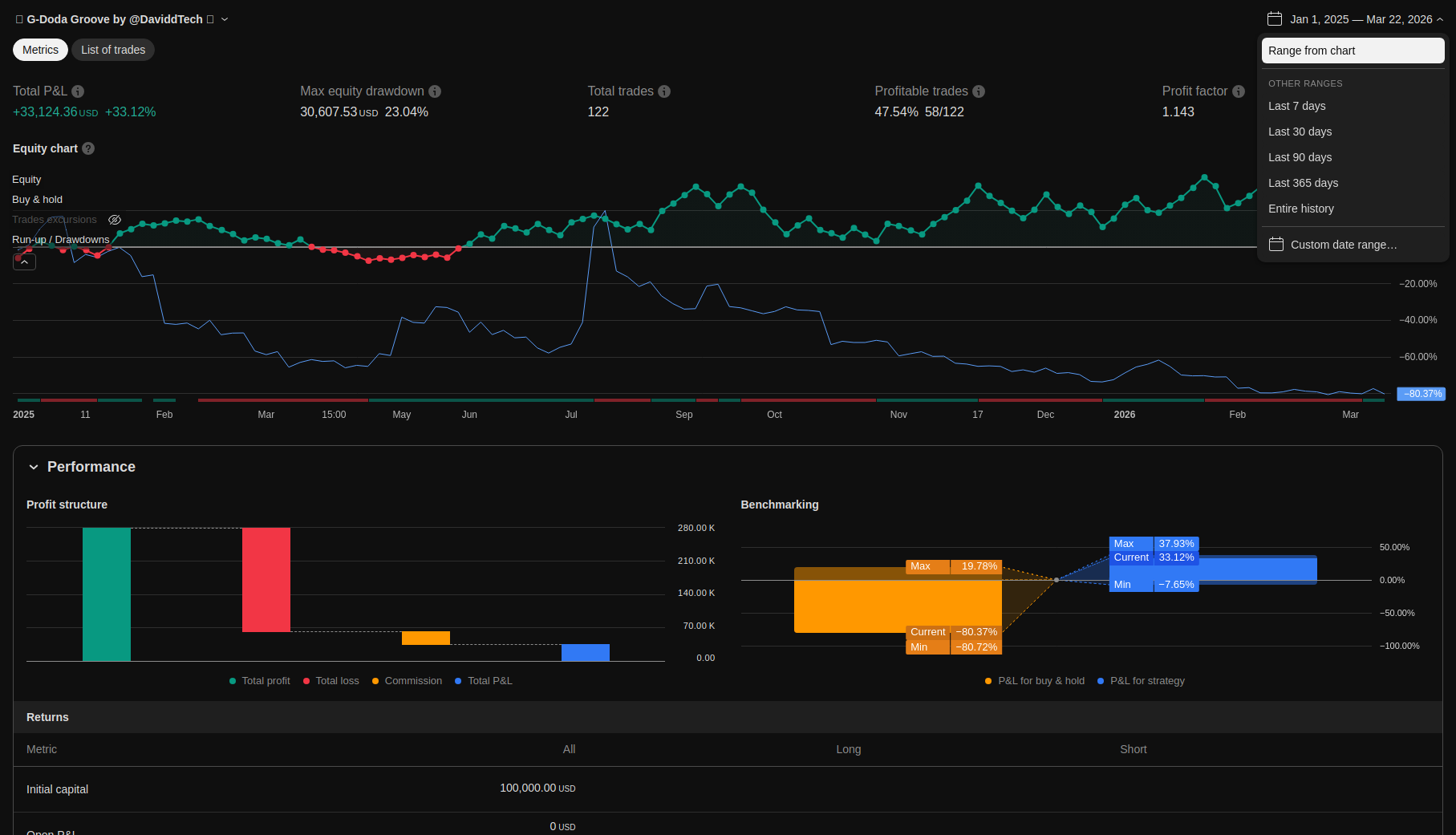| Max Equity Drawdown As % Of Initial Capital (intrabar) | 30.61 | |||||