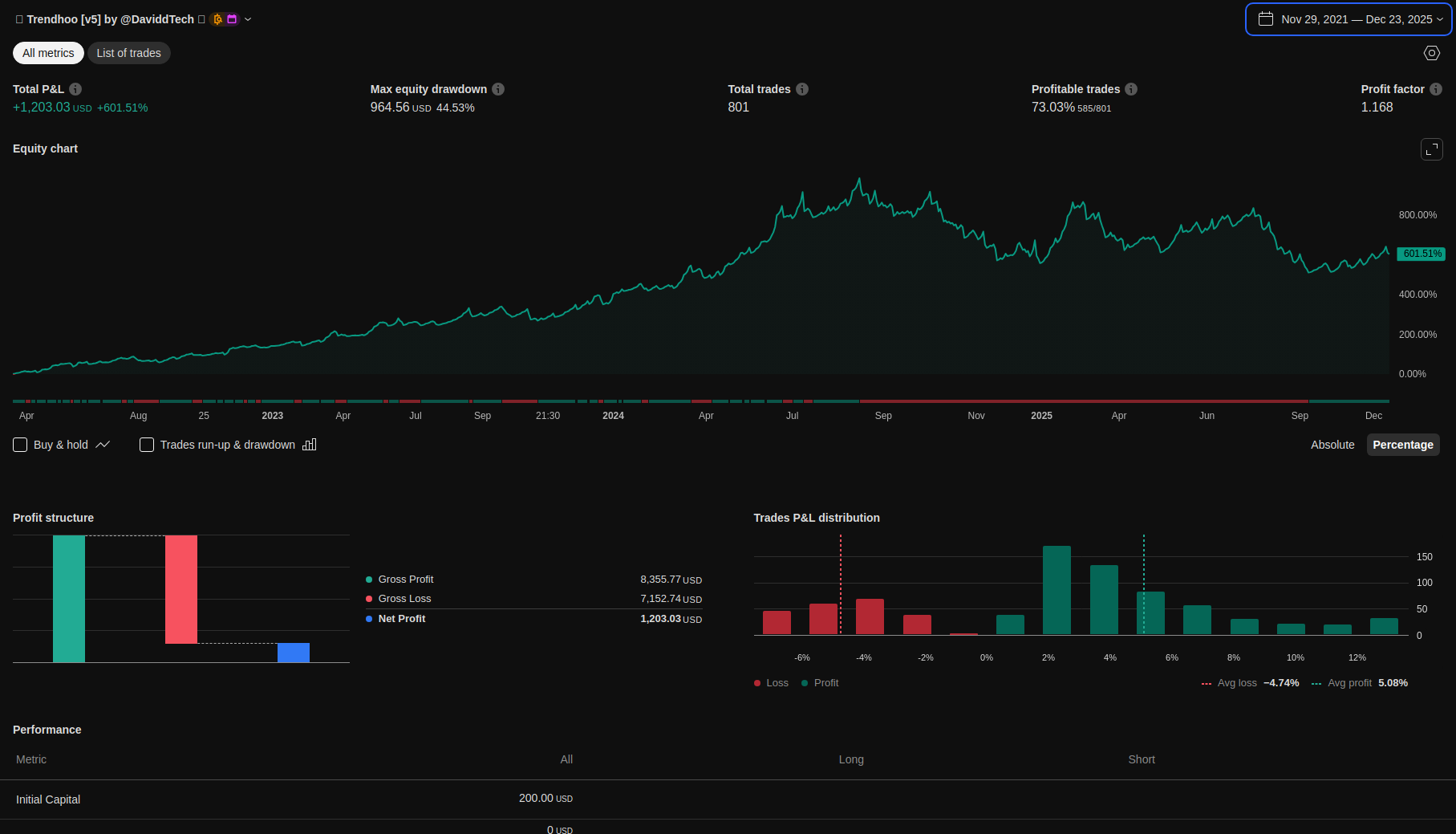 | Total Closed Trades | 801.0 | 500.0 | 301.0 | |||