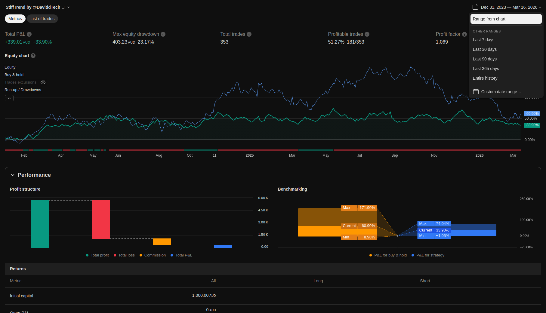 Detailed trading performance analysis and key metrics