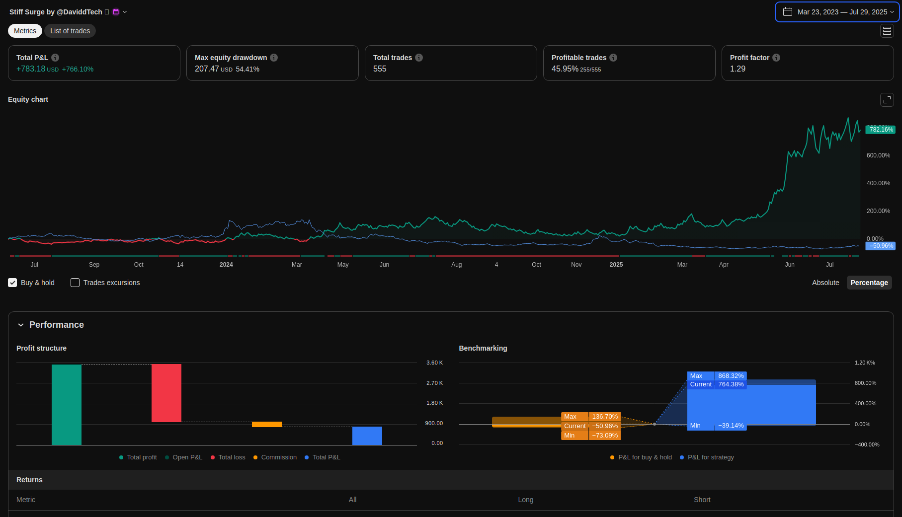 | Max Equity Drawdown (intrabar) | 916.62 | 77.99 | ||||