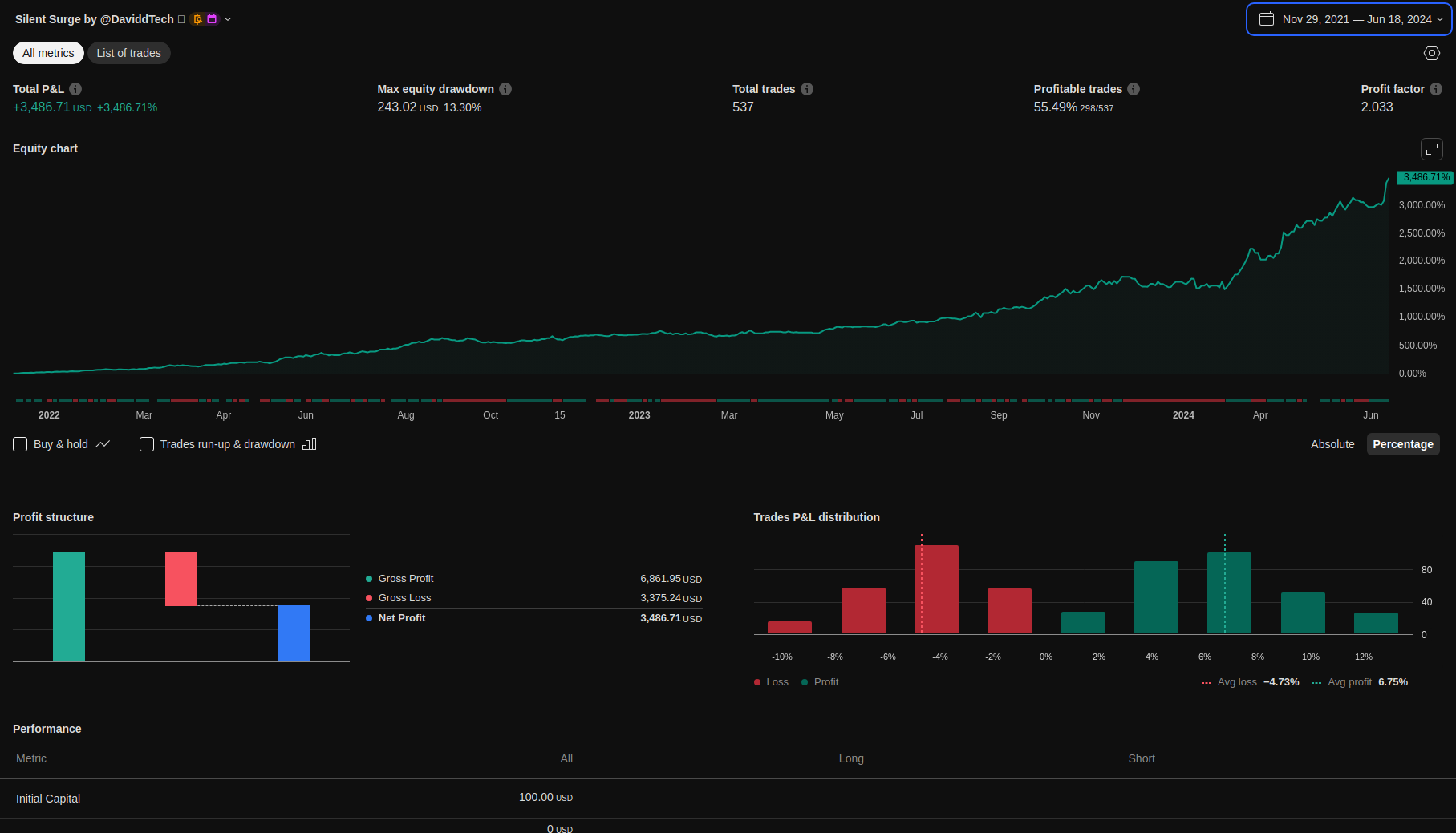 | Total Closed Trades | 537.0 | 295.0 | 242.0 | |||
