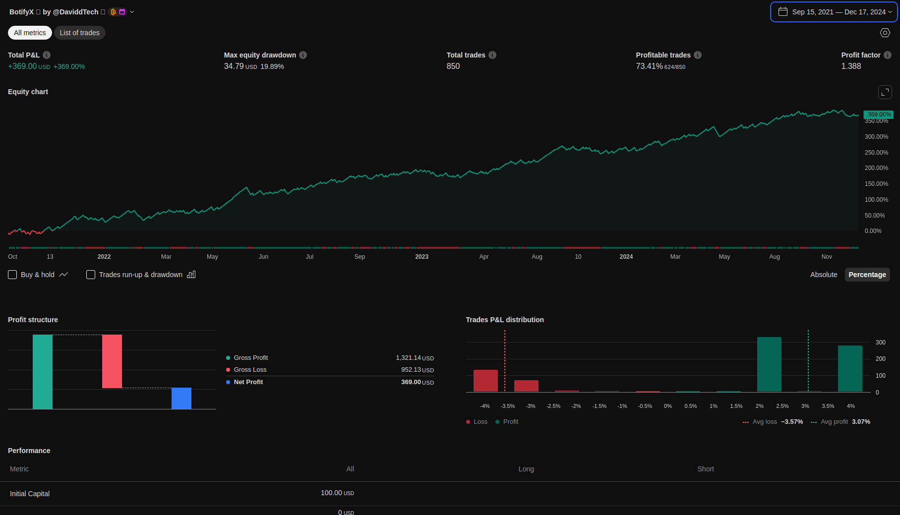 Detailed trading performance analysis and key metrics