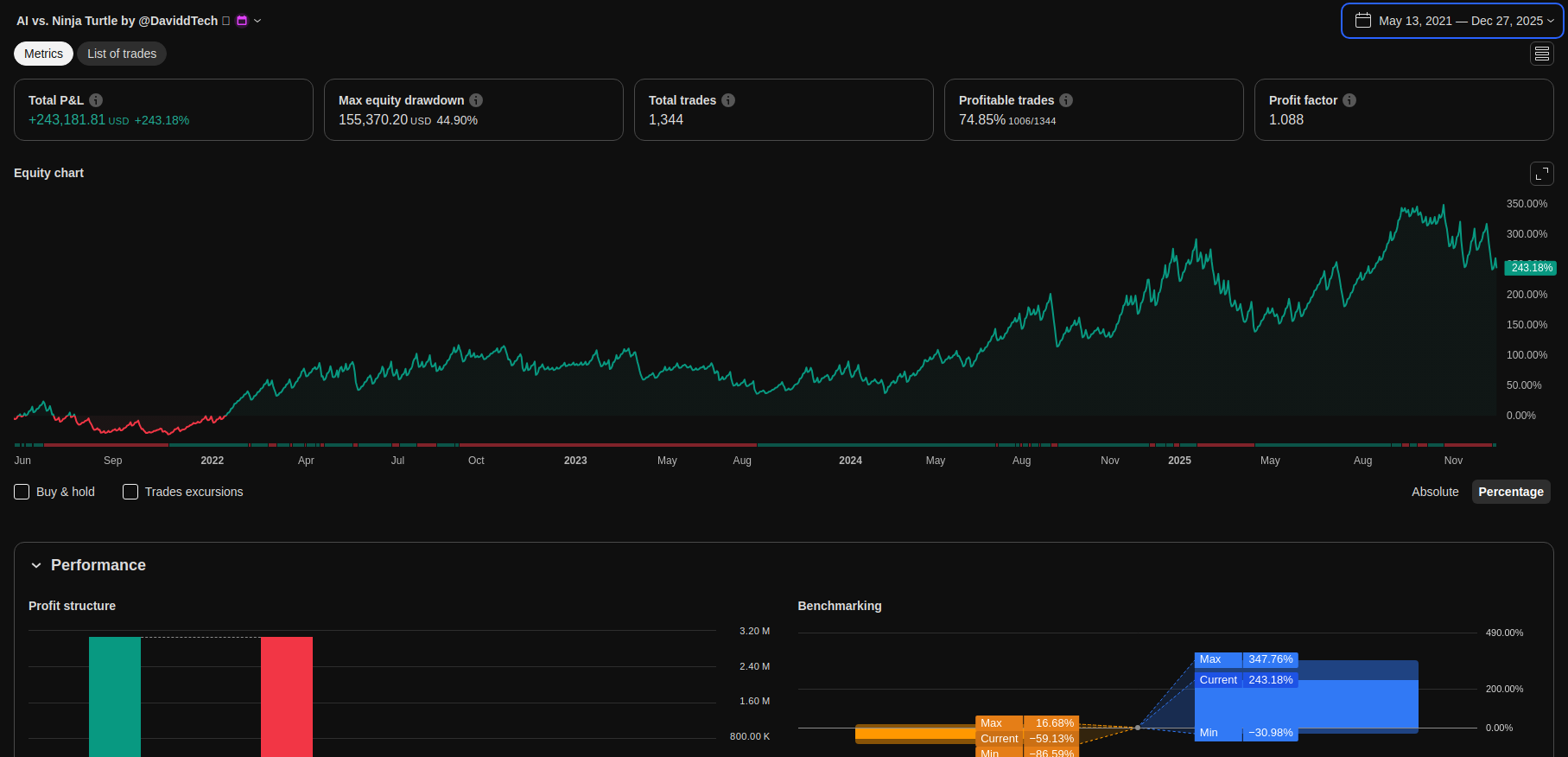 | Max Equity Drawdown (intrabar) | 155370.2 | 44.9 | ||||