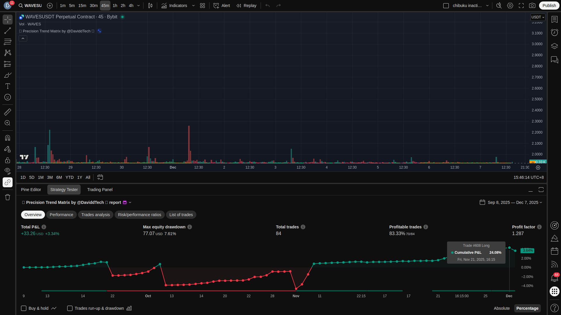 🛡️ PRECISIONTRENDMATRIX WAVEUSDT 45M 23.4