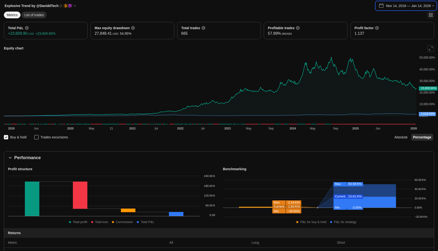 Detailed trading performance analysis and key metrics
