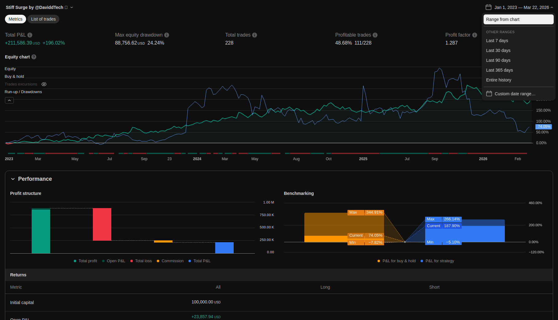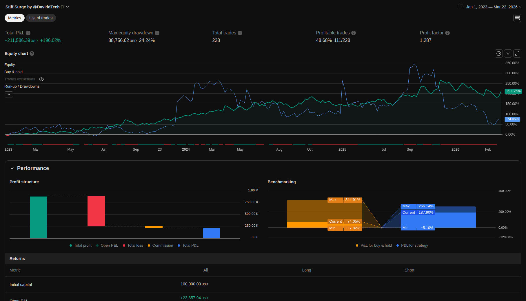 | Total Closed Trades | 228.0 | 146.0 | 82.0 | |||