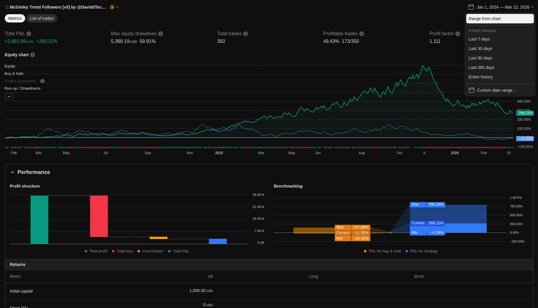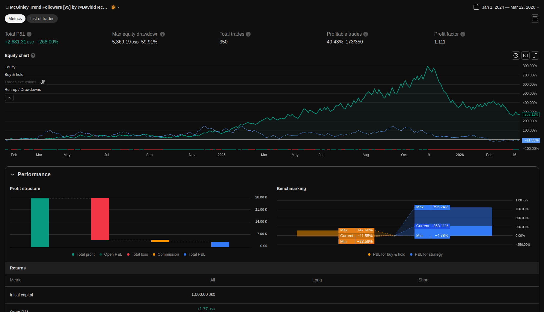 | Total Closed Trades | 350.0 | 182.0 | 168.0 | |||