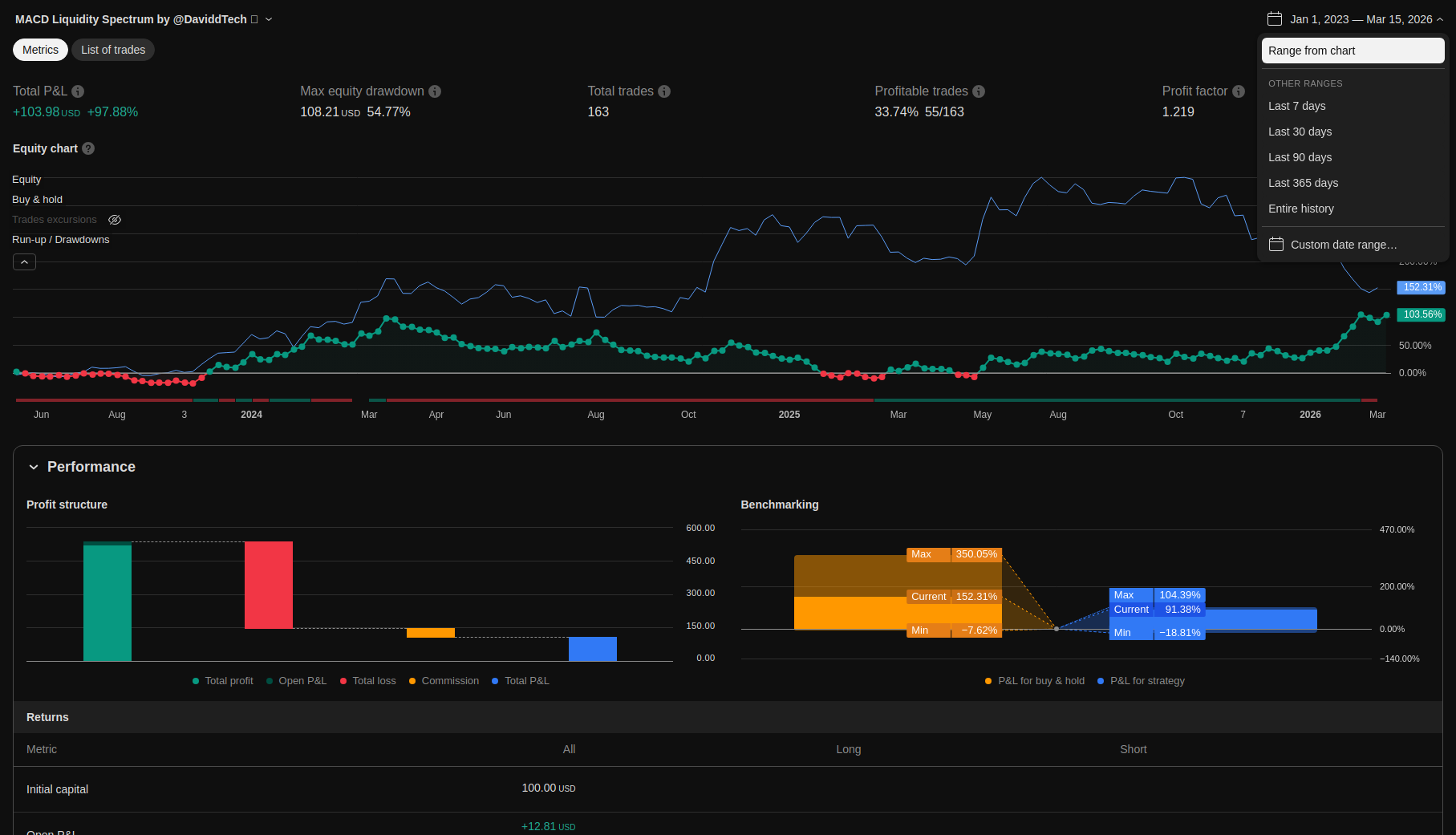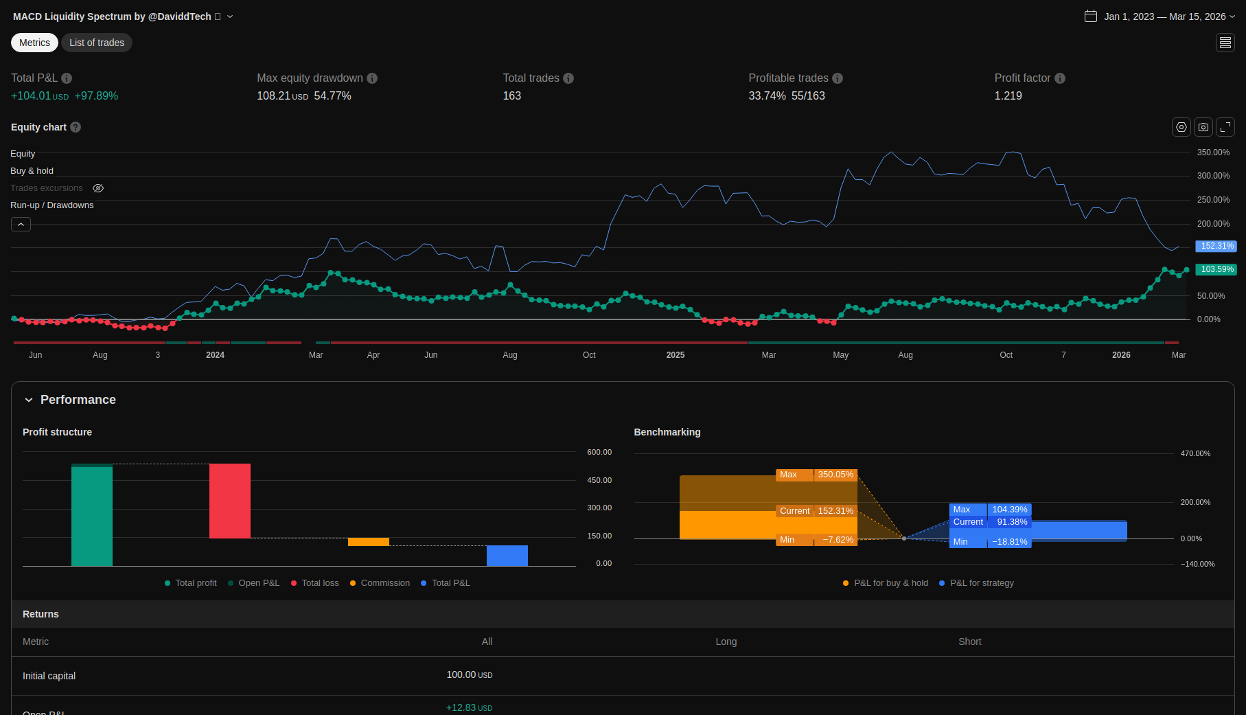 | Max Equity Drawdown (intrabar) | 108.21 | 54.77 | ||||