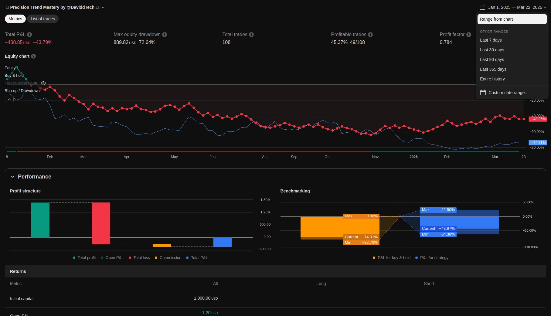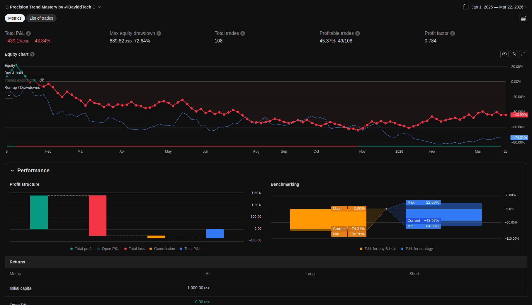 Detailed trading performance analysis and key metrics