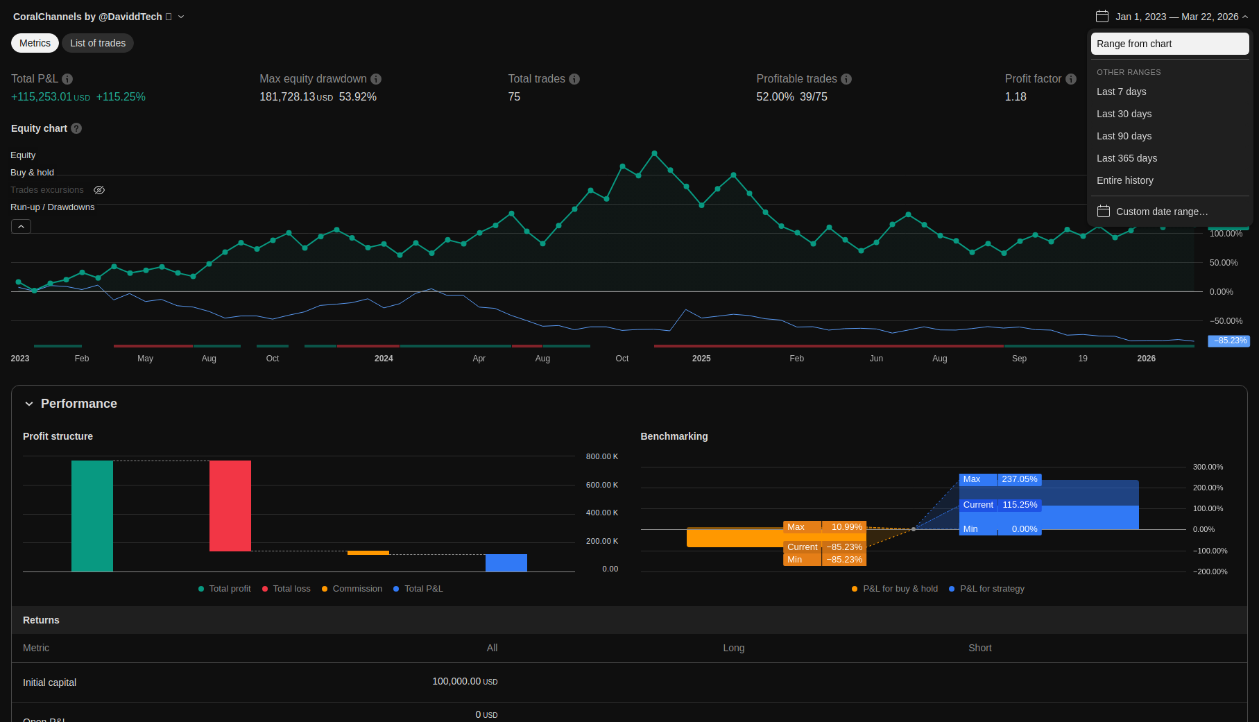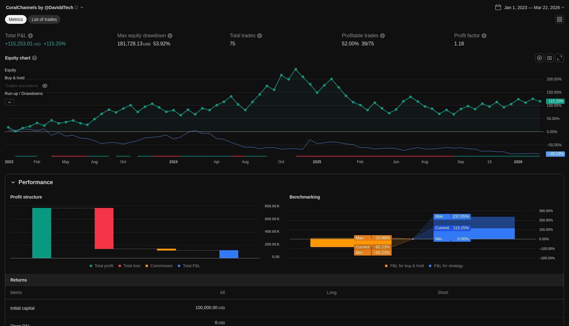 Detailed trading performance analysis and key metrics