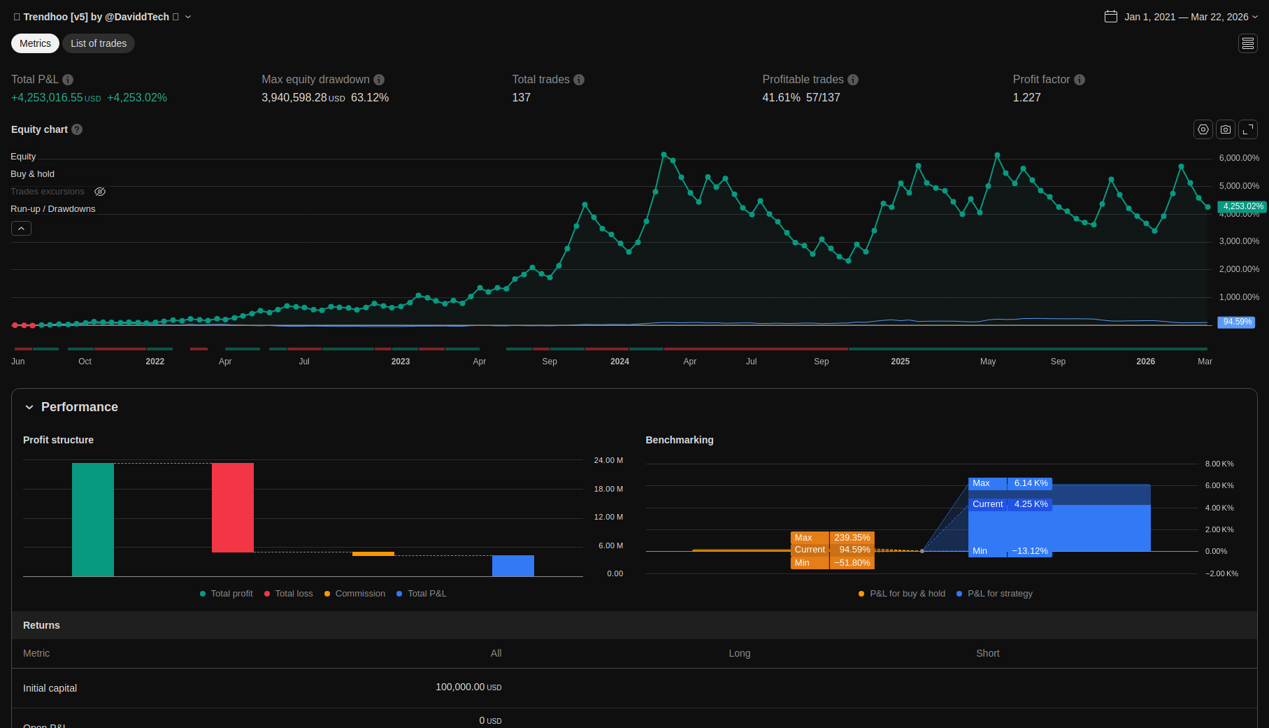 | Total Closed Trades | 137.0 | 63.0 | 74.0 | |||
