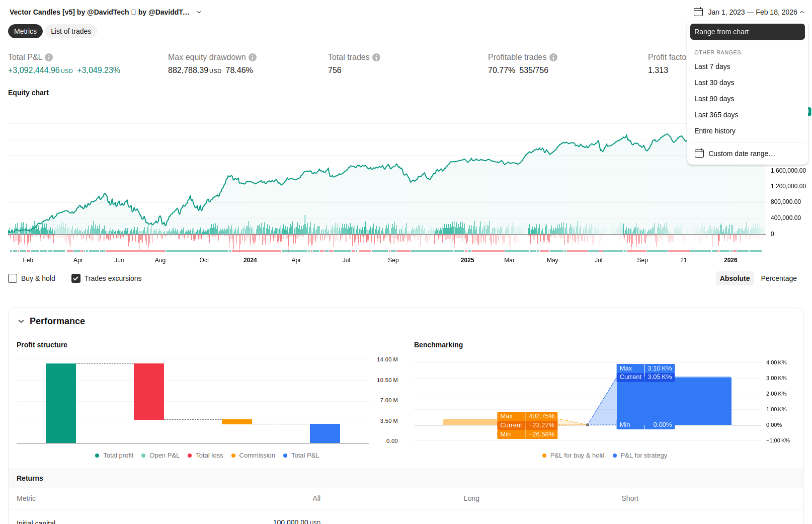 | Max Equity Drawdown (intrabar) | 882788.39 | 78.46 | ||||