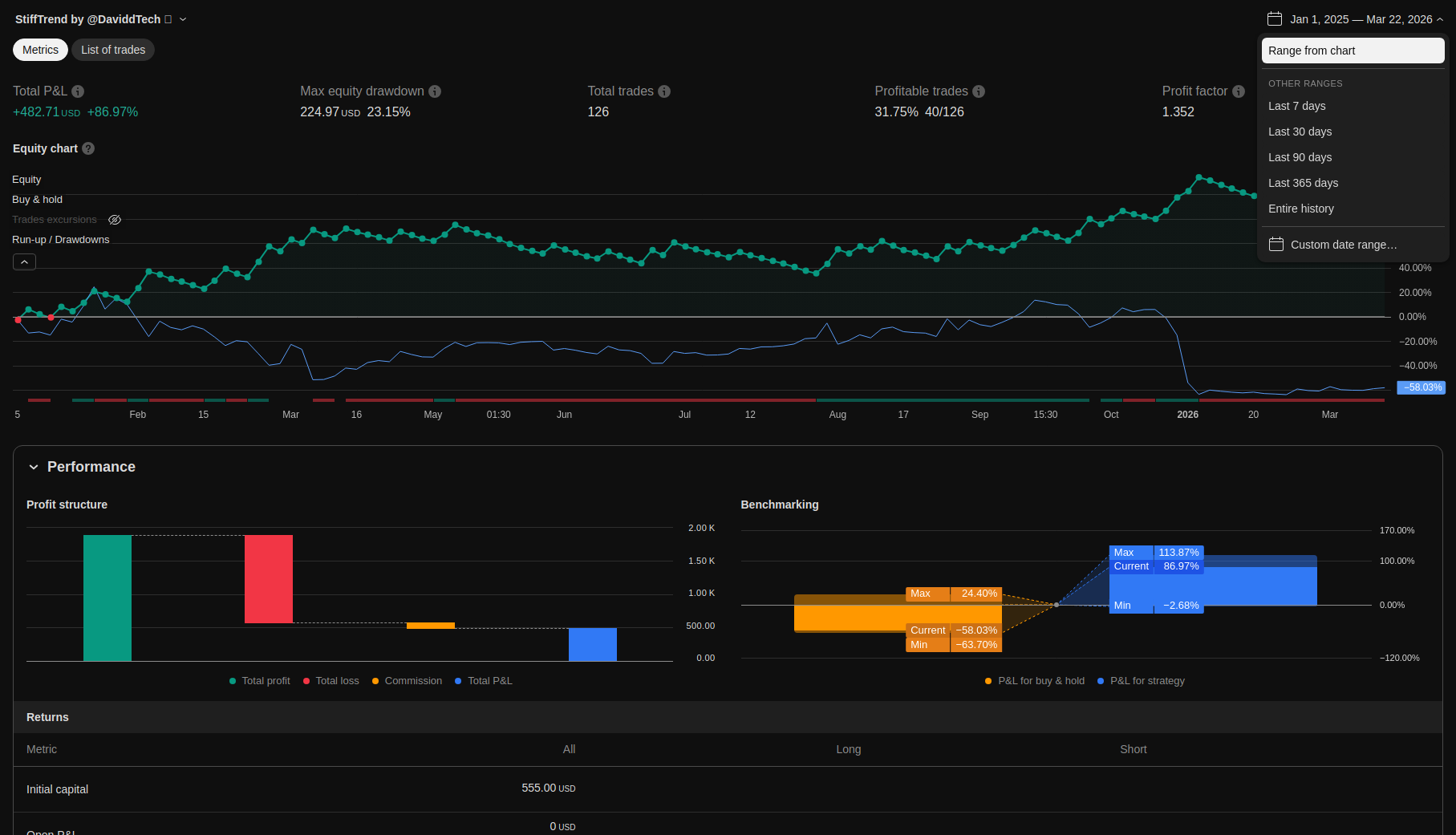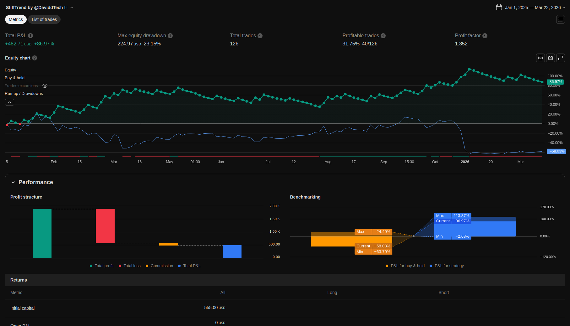 | Max Equity Drawdown (intrabar) | 224.97 | 23.15 | ||||