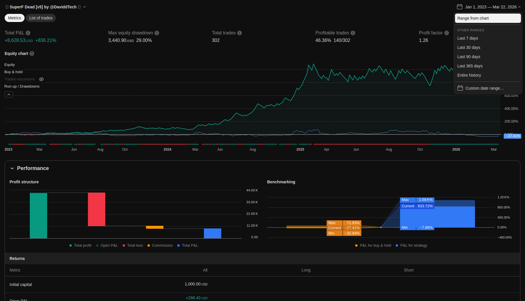 | Total Closed Trades | 302.0 | 151.0 | 151.0 | |||