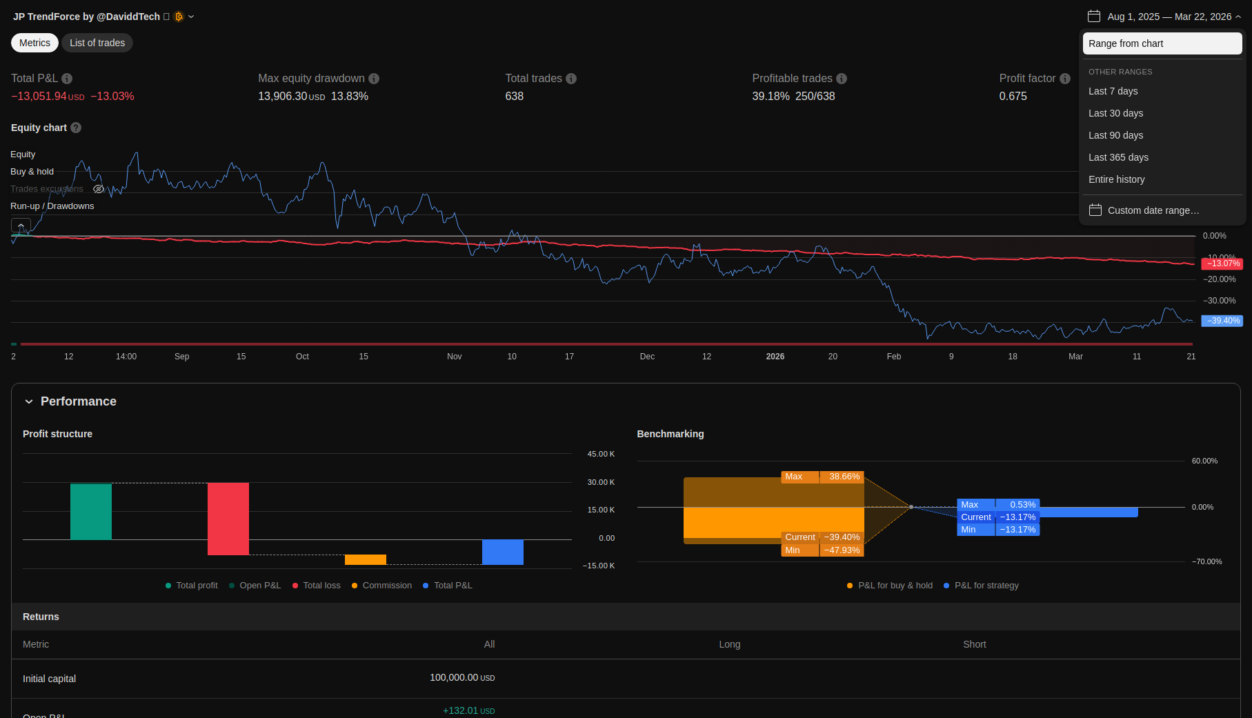 | Total Closed Trades | 638.0 | 335.0 | 303.0 | |||