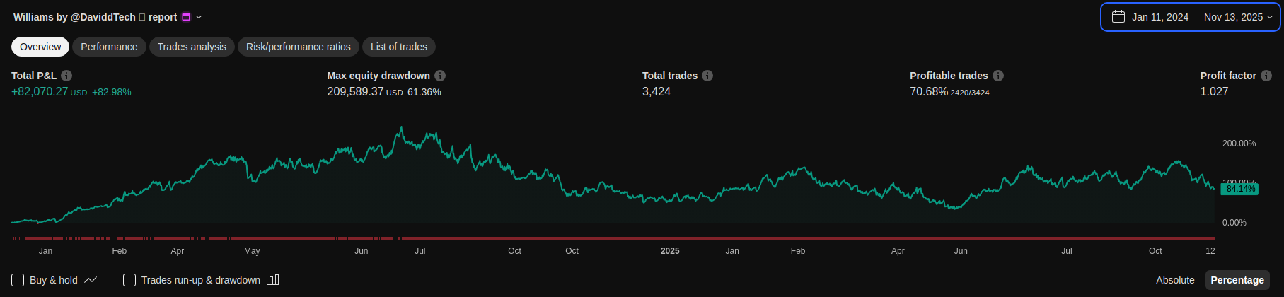 | 2025 | +30.48% +188.95% Simple P&L | +52.41% +199.03% Simple P&L | -37.75% +109.93% Simple P&L | -16.14% +109.30% Simple P&L | Login to see results | Login to see results | Login to see results | Login to see results | Login to see results | Login to see results | Login to see results | +0.00% +0.00% Simple P&L |