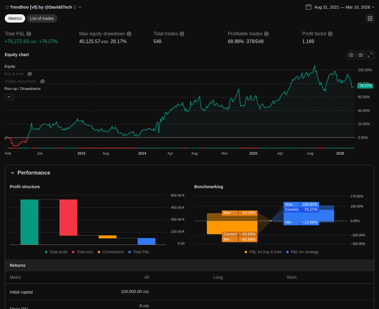 Detailed trading performance analysis and key metrics