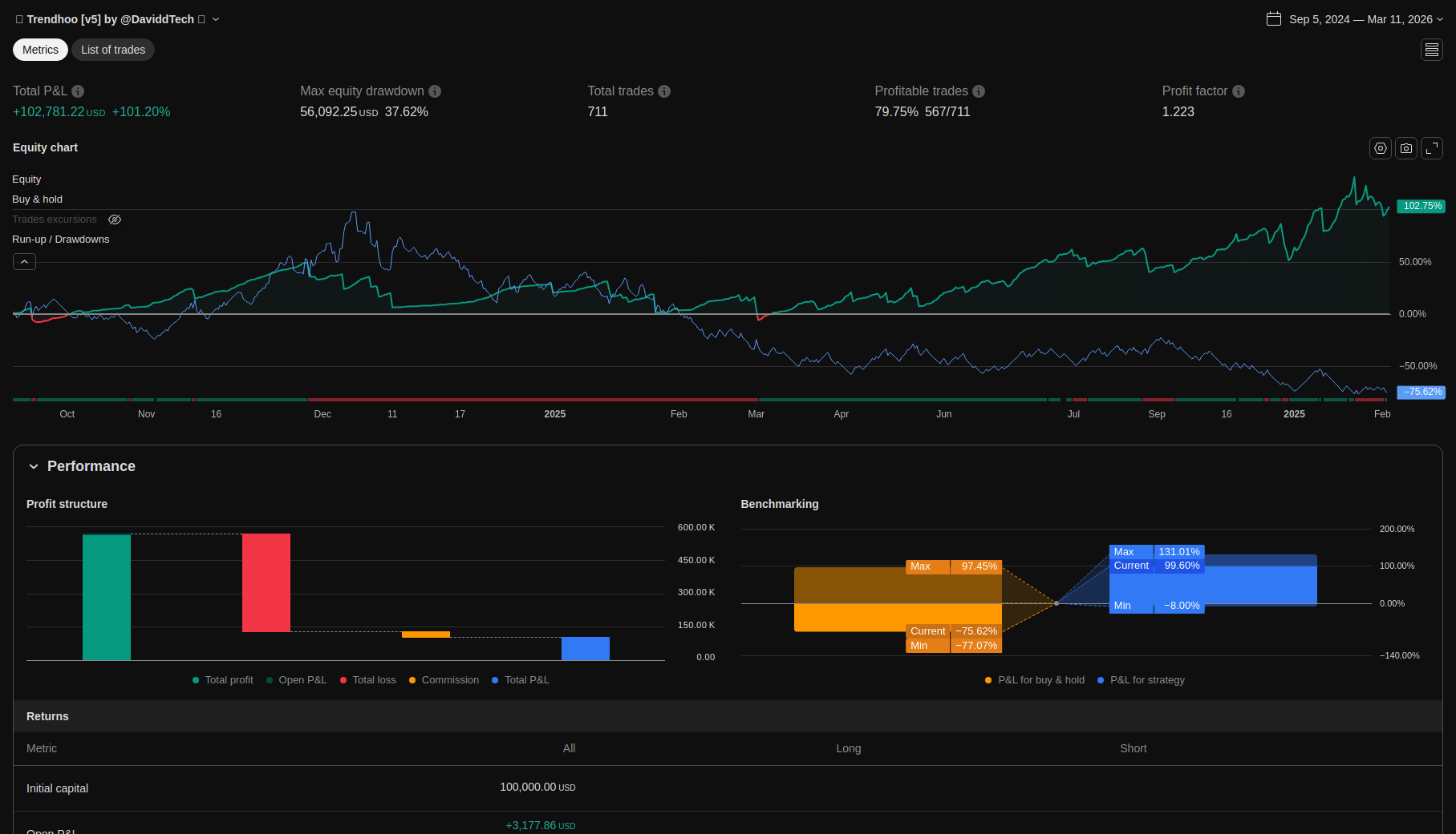 | Total Closed Trades | 711.0 | 322.0 | 389.0 | |||