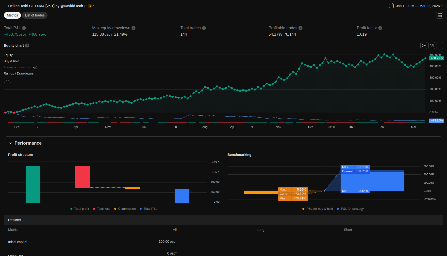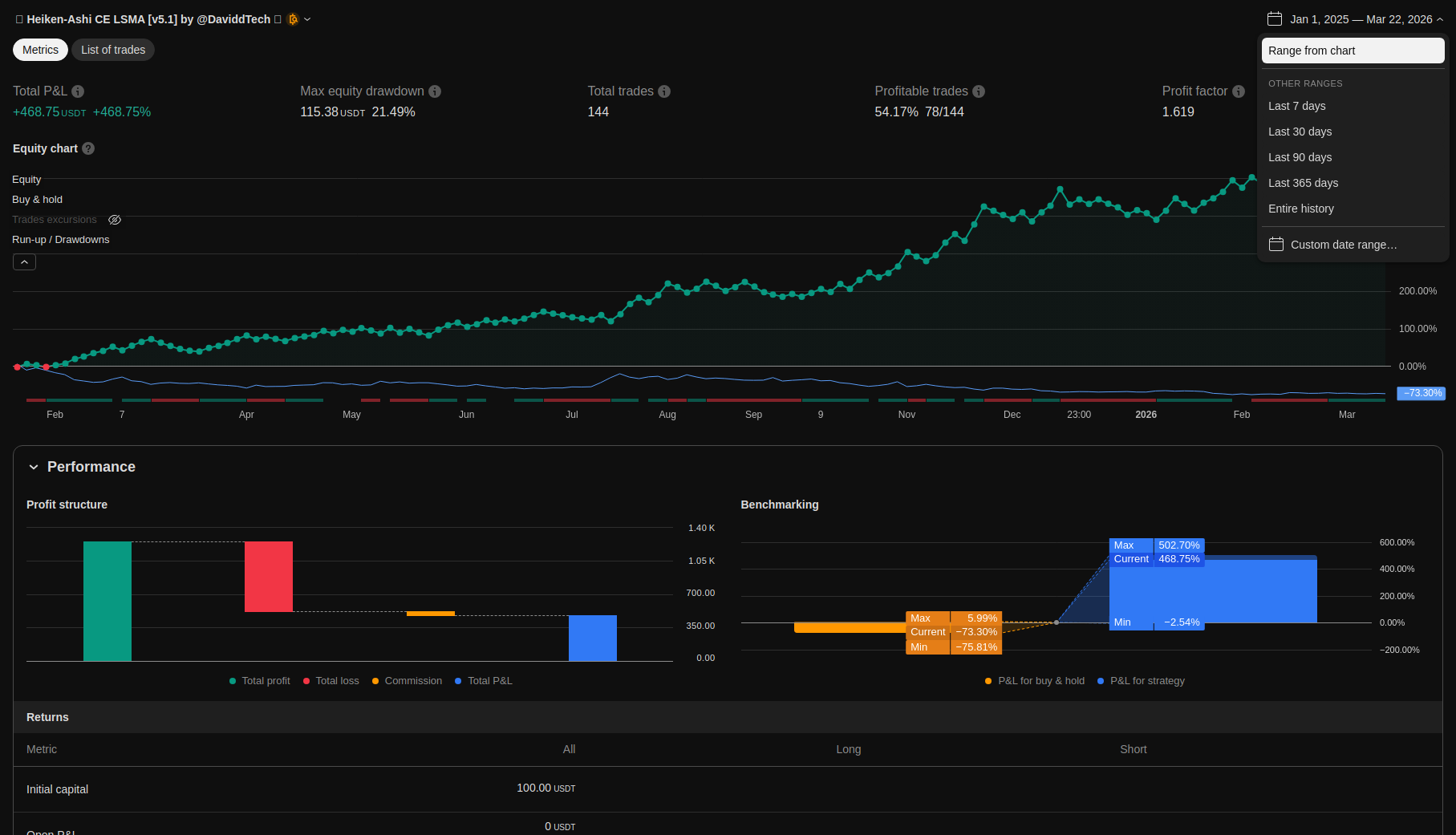 | Max Equity Drawdown (intrabar) | 115.38 | 21.49 | ||||