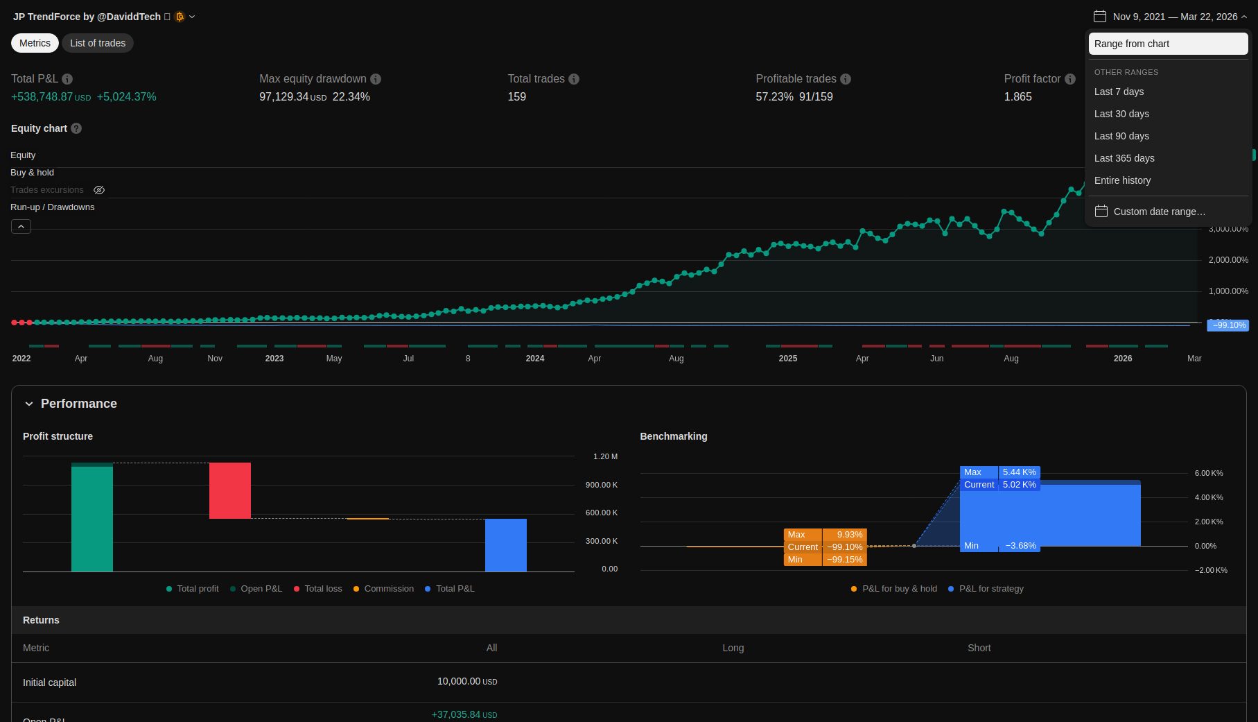 | Max Equity Drawdown (intrabar) | 97129.34 | 22.34 | ||||