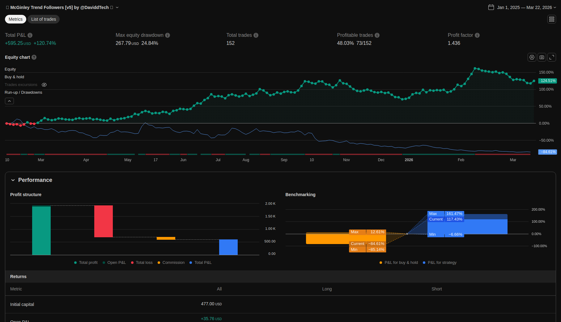 | Total Closed Trades | 151.0 | 27.0 | 124.0 | |||