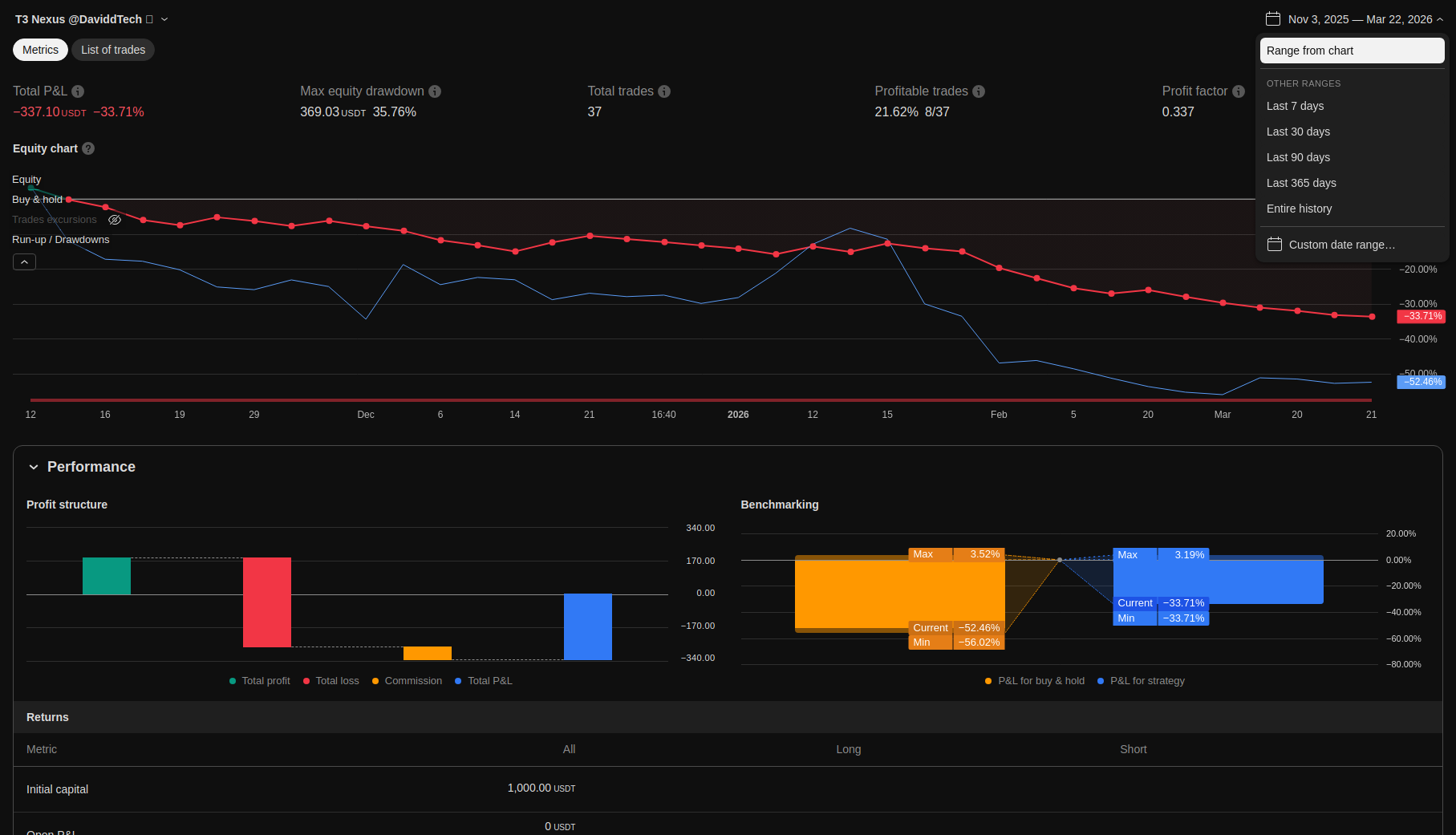 Detailed trading performance analysis and key metrics