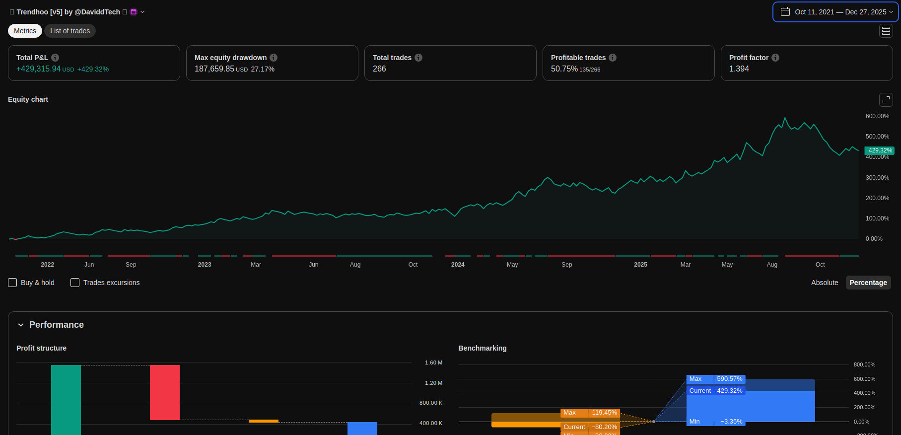 | Total Closed Trades | 266.0 | 139.0 | 127.0 | |||