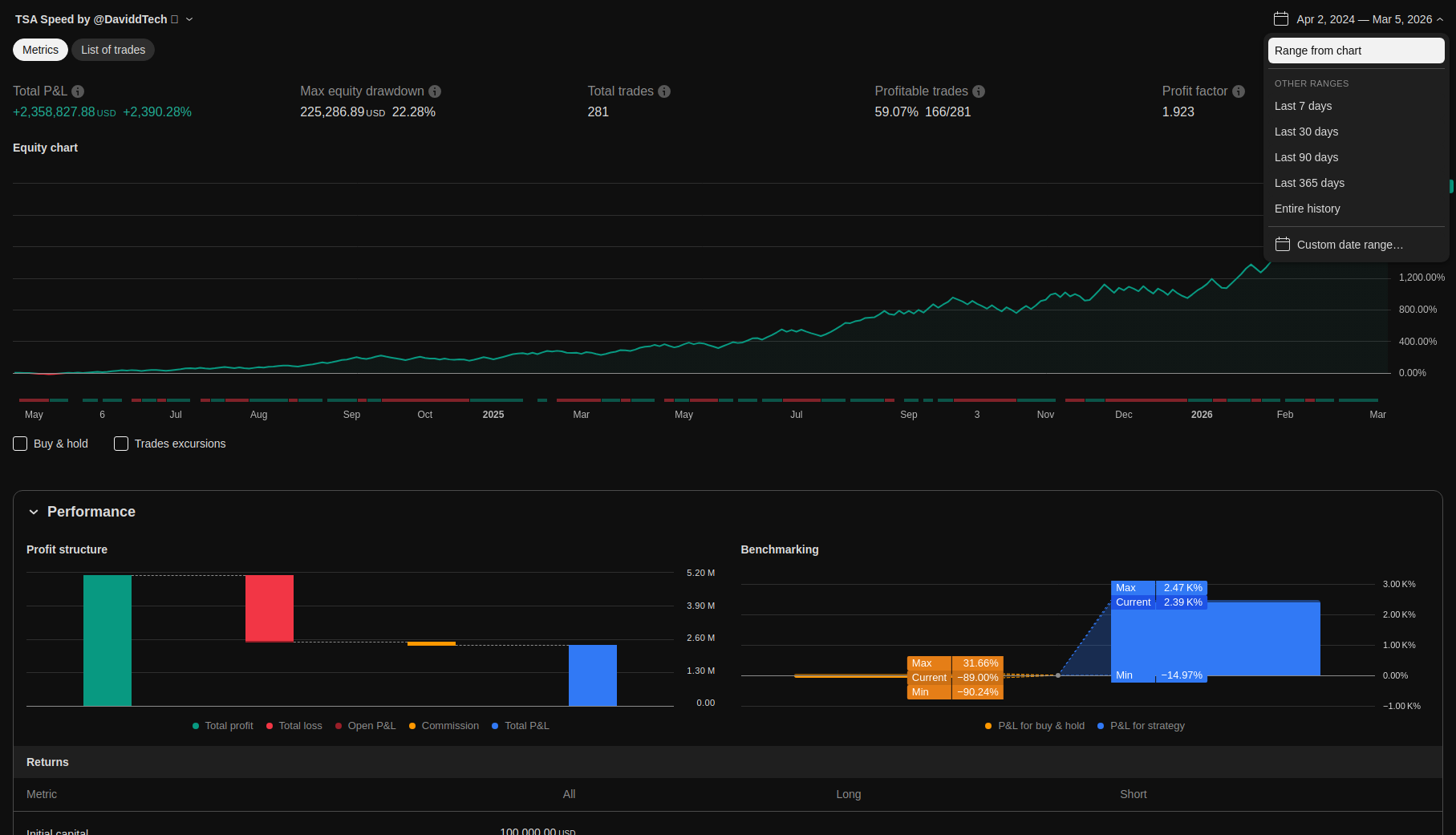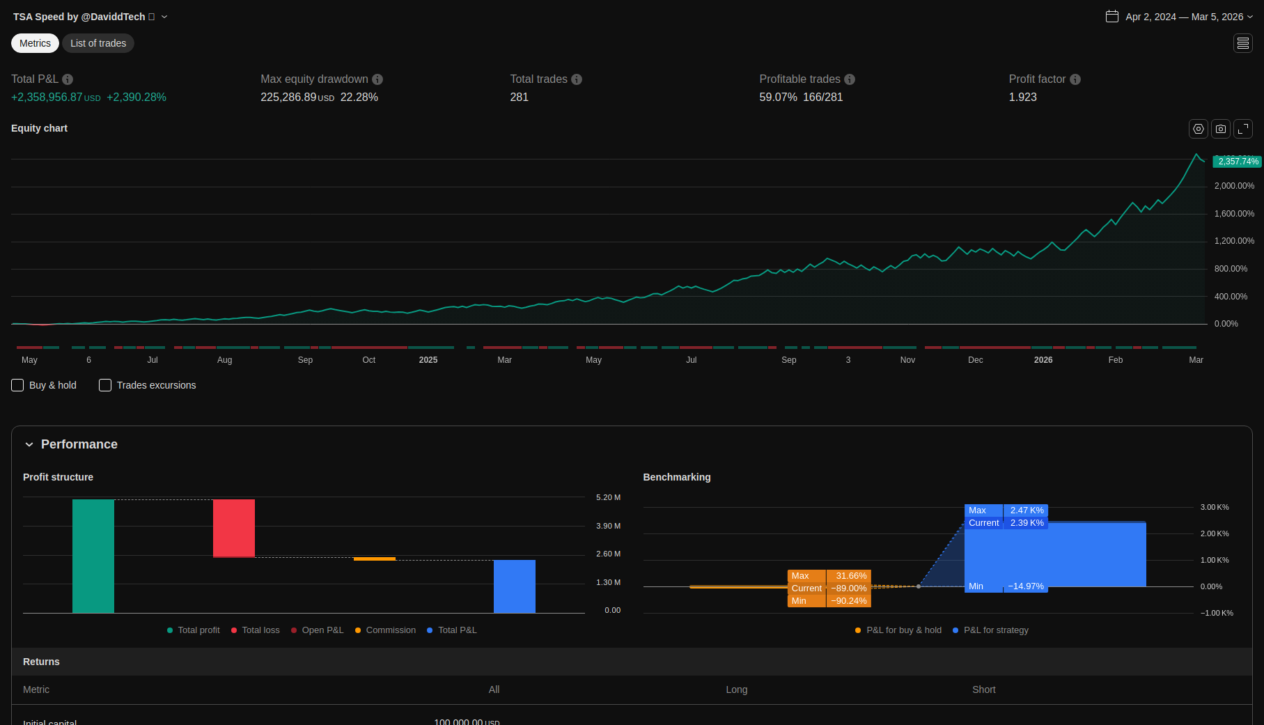 | Max Equity Drawdown (intrabar) | 225286.89 | 22.28 | ||||