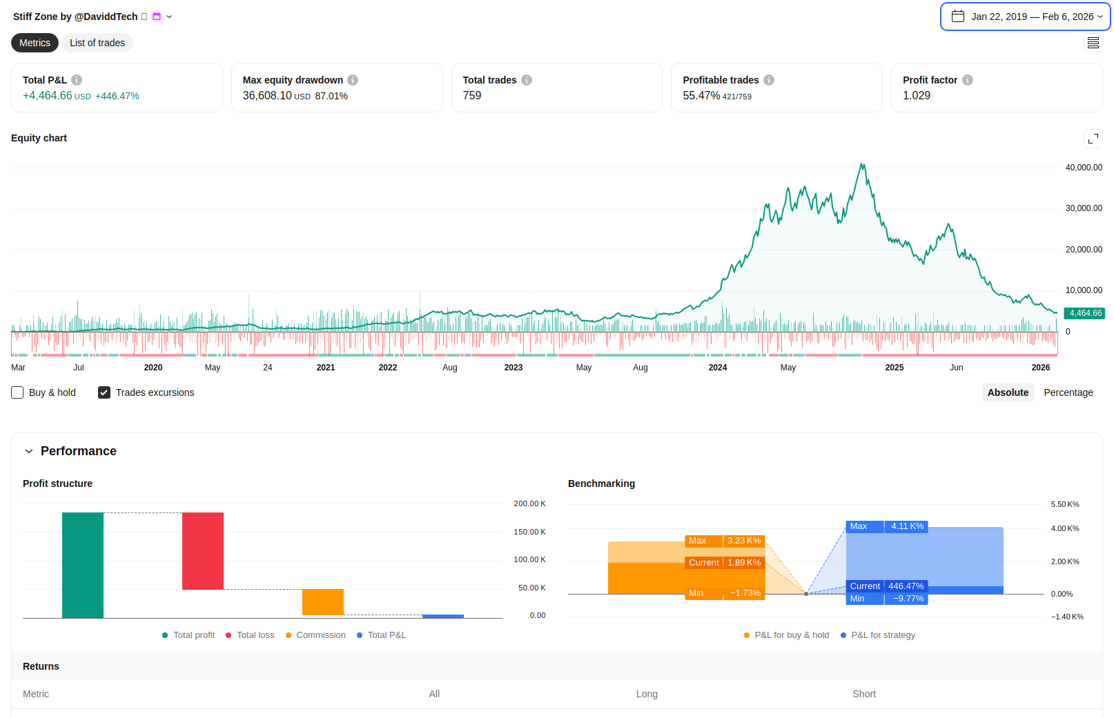 | 2025 | +0.90% +216,966.61% Simple P&L | -0.97% +101,281.50% Simple P&L | +0.40% +107,926.64% Simple P&L | +0.74% +286,191.93% Simple P&L | -0.56% +244,546.54% Simple P&L | +0.36% +169,747.22% Simple P&L | -0.56% +139,284.34% Simple P&L | Login to see results | Login to see results | Login to see results | Login to see results | Login to see results |