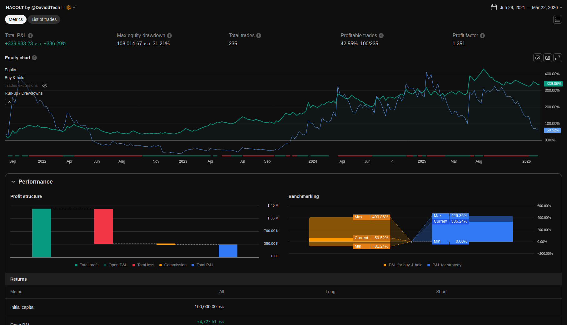 | Total Closed Trades | 235.0 | 125.0 | 110.0 | |||