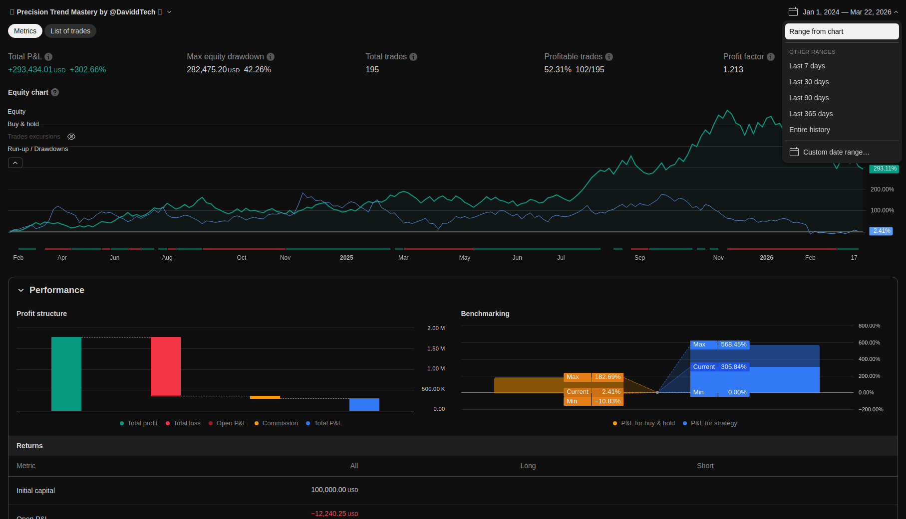 | Max Equity Drawdown (intrabar) | 282475.2 | 42.26 | ||||
