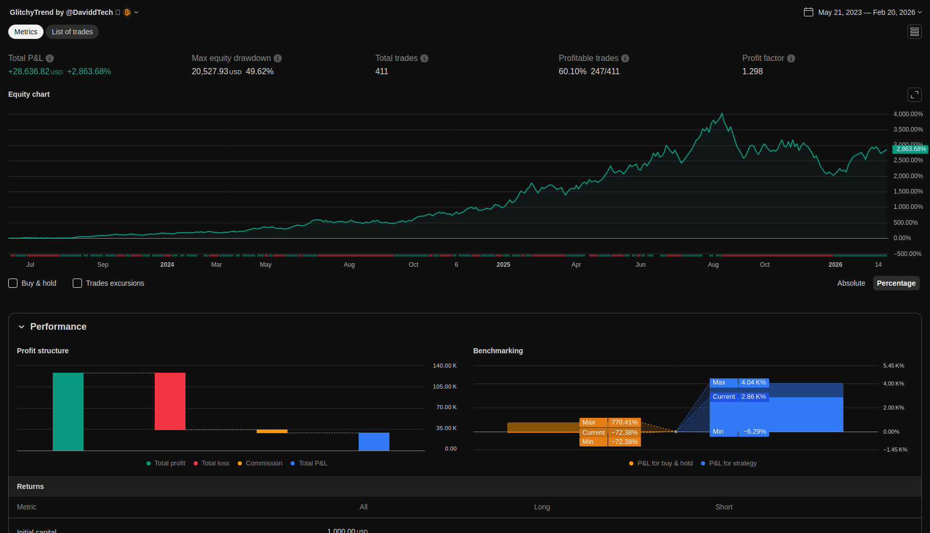 | Total Closed Trades | 411.0 | 220.0 | 191.0 | |||