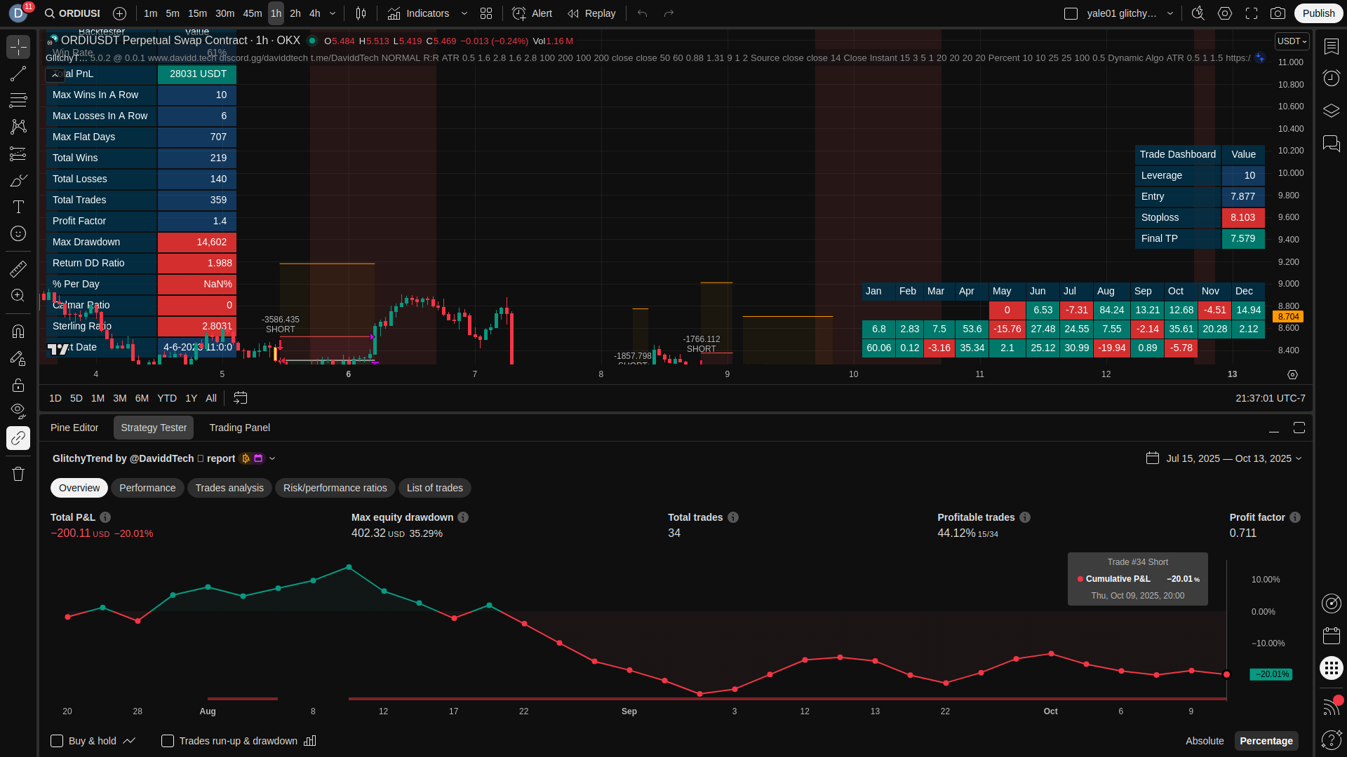 🛡️ GLITCHYTREND ORDIUSDT 1H 29.07.2025