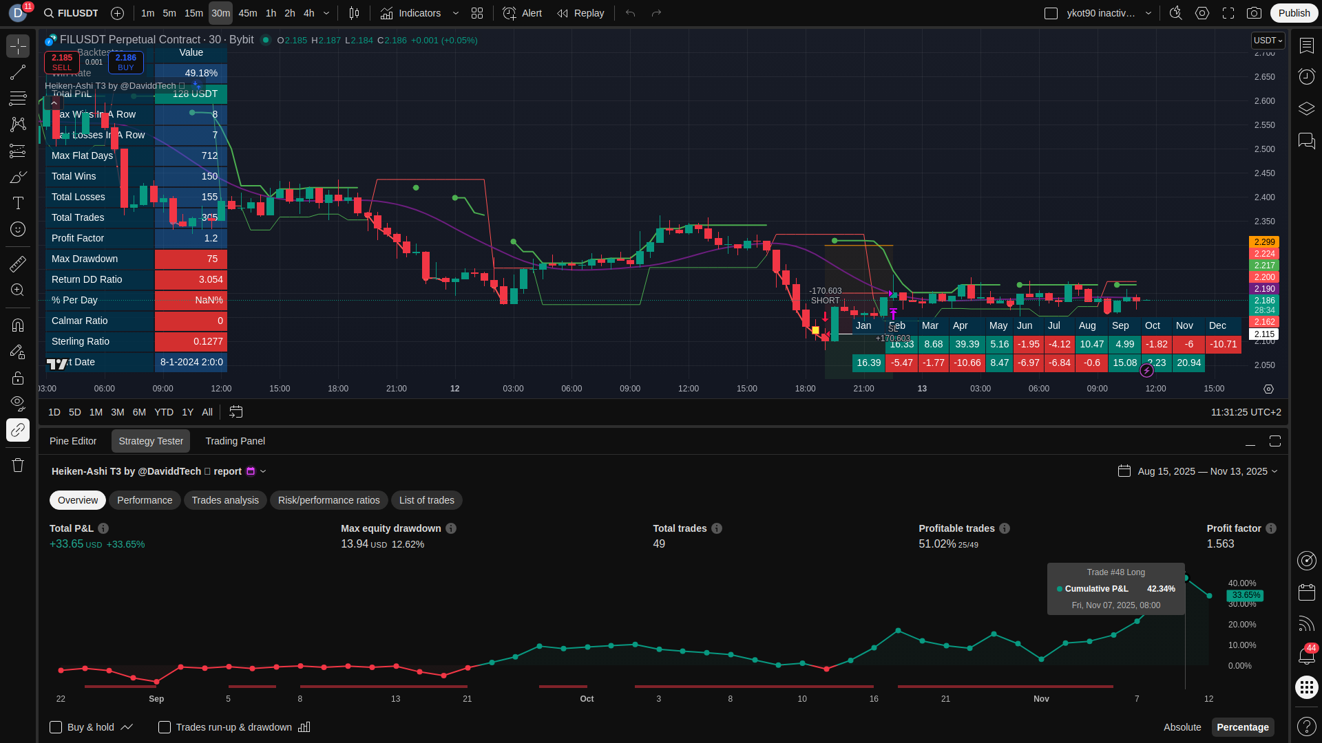 | 2025 | +130.25% +8.75% Simple P&L | -50.61% -0.37% Simple P&L | -15.49% -6.68% Simple P&L | -91.55% -14.29% Simple P&L | Login to see results | Login to see results | Login to see results | Login to see results | Login to see results | Login to see results | Login to see results | +0.00% +0.00% Simple P&L |